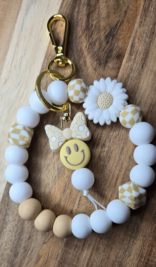 White Daisies & Smiley Keychain
