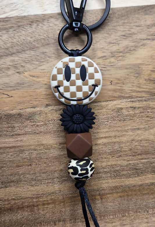 Tan Checkered Smile w/ Animal Print Keychains